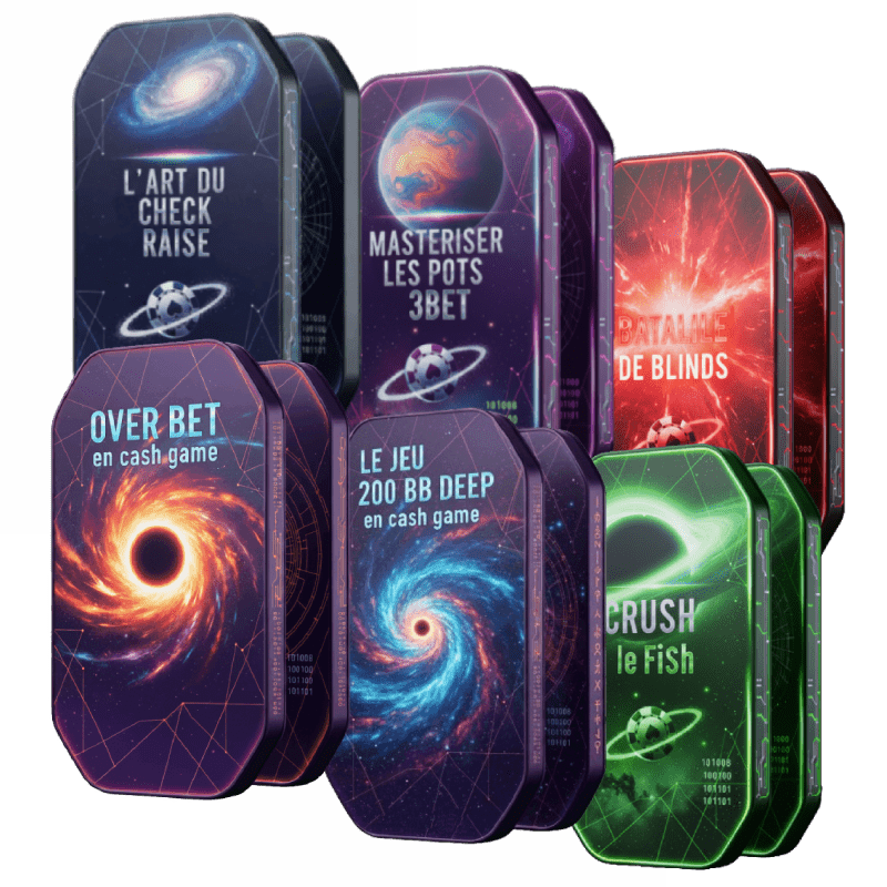 Cette formation poker complète en cash game est composée de 6 modules qui te permettront de te spécialiser et comprendre en profondeur les différentes situations et cas de figure. Dans ce pack tu retrouveras un module dédié au jeu deepstack (200B), un module spécifique au Check/Raise, une formation qui cible le cas de l’Overbet, les situations en pot 3 bet, adapter son jeu face à aux joueurs récréatifs, et le jeu en bataille de blinds.