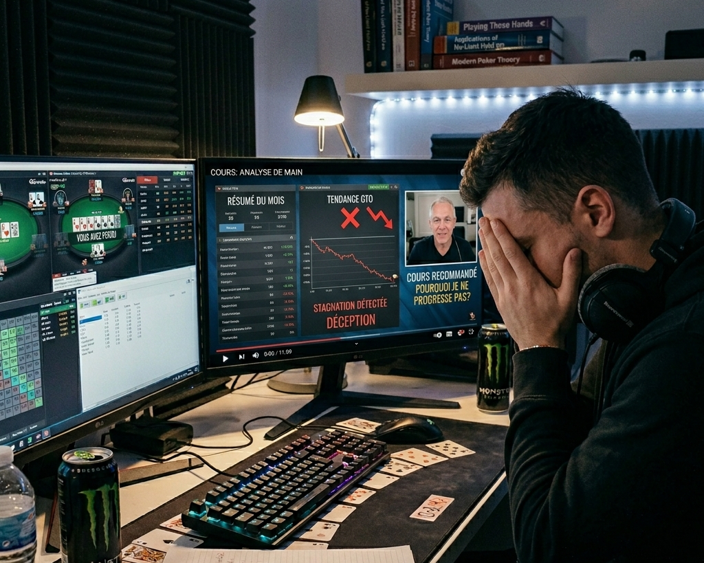 Beaucoup de joueurs pensent qu’il suffit d’enchaîner les sessions pour progresser au poker. Plus ils jouent, plus ils pensent s’améliorer. Mais en réalité, la majorité des joueurs stagnent… ou régressent. Pourquoi ? Parce que jouer sans travailler son jeu, c’est répéter les mêmes erreurs. Encore et encore. Sur des milliers de mains.Et c’est exactement ce qui t’empêche de devenir gagnant. Dans cet article, on va voir pourquoi travailler son jeu est la vraie clé pour progresser en cash game… et surtout comment le faire efficacement.